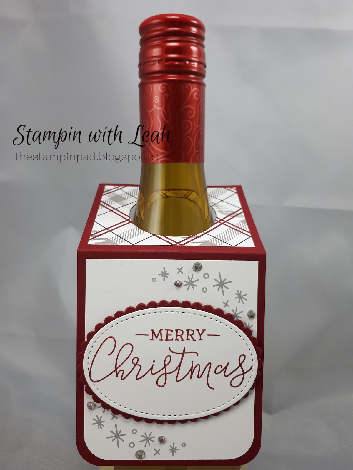 Tag sizing – cut Cheery Cobbler CS base at 6″ X3″ and score at 2-1/2″. Layer Whisper White CS cut at 5-3/4″ X 2-3/4″ and Festive Farmhouse DSP cut at 2-3/4″ X 2-1/4″. Round top and bottom corner before gluing the pieces together.