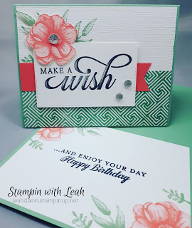 To make this card I paired it with the free Sale-a-bration Painted Season Bundle (150349) which you can earn with a $120 order. These ‘Distinktive’ stamps make gorgeous stamping so simple. I made a facebook video where I make a very similar card (just changed up the embellishments) however due to technical difficulties with Facebook today the video is not running very smoothly. You can try viewing it here – if it is glitchy I apologize. These stamps are so simple to use though – literally ink, stamp, done.