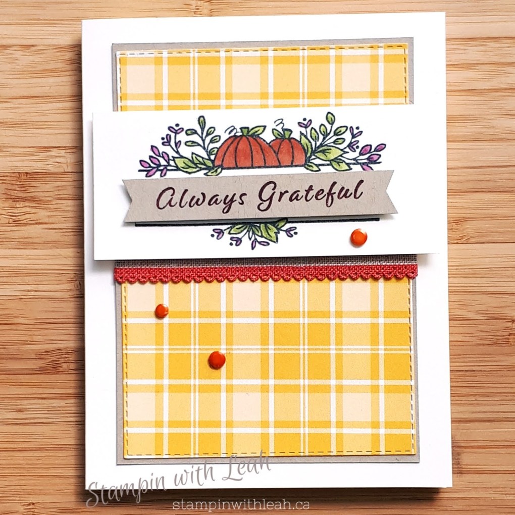 Thanks for joining me today to see my newest card creation. This thankfulness card was created as a head start on some back to school and Thanksgiving cards I know I will need as well as for this week’s TGIF Challenge.