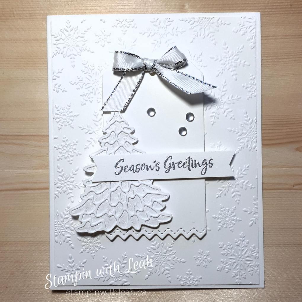 I am featuring the In The Pines Bundle on my Facebook page this week. Today’s card was an elegant card created using a Silver and White colour scheme. Check out my Facebook page this week to see many other cards ranging from elegant to rustic.