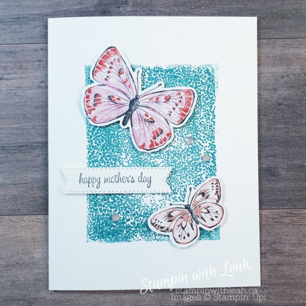I LOVE finding new ways to create interesting backgrounds. This one was so simple. I just pressed a whole ink pad against my E block and then pressed the block onto my card base. Voila! Instant background. If you want to see this in action – check out the video below.