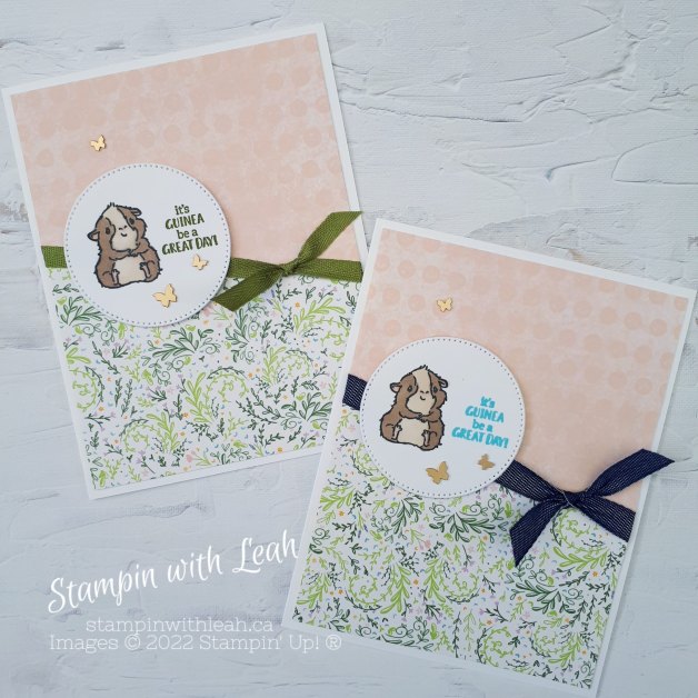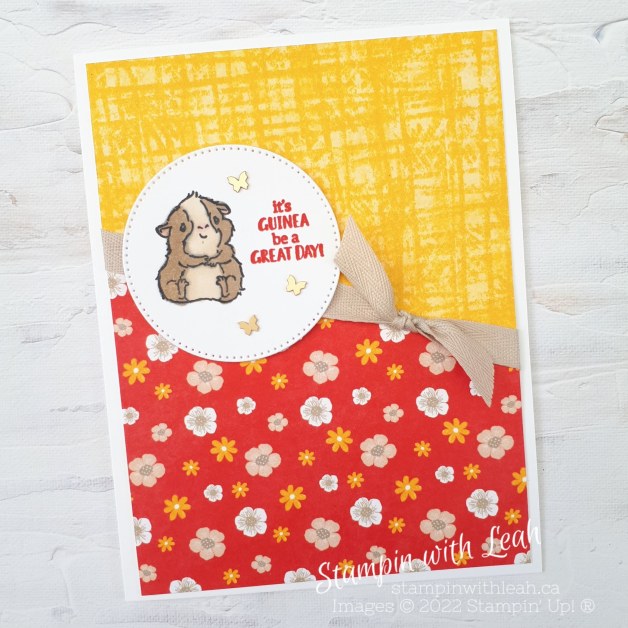 Every Wednesday morning I go live on FB and You Tube to create something using the Stampin’ Up! product that I am featuring that week. This Wednesday I played around with the adorable ‘Glad We’re Friends’ stamp set and the colourful Tea Boutique 6X6 DSP.