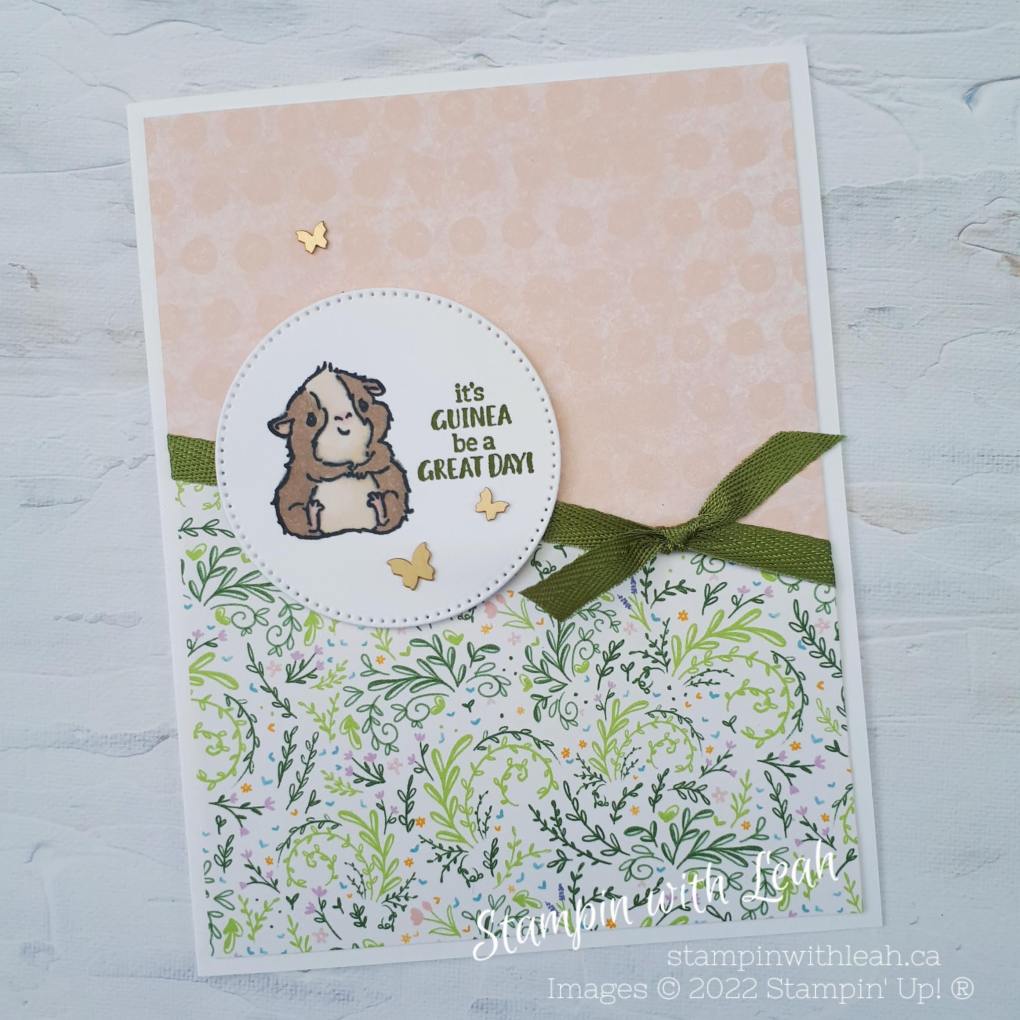 Every Wednesday morning I go live on FB and You Tube to create something using the Stampin’ Up! product that I am featuring that week. This Wednesday I played around with the adorable ‘Glad We’re Friends’ stamp set and the colourful Tea Boutique 6X6 DSP.