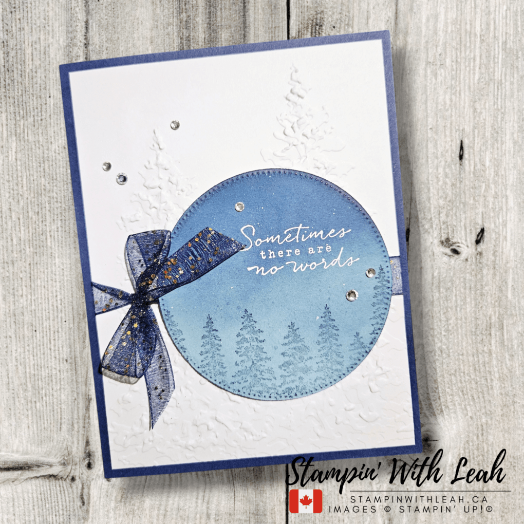 This card design is simple yet elegant, combining soft ink blending, embossed textures, and a touch of shimmer to create a peaceful, wintry scene.