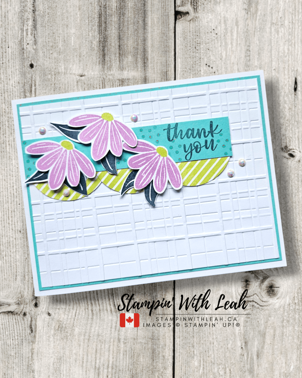 For my card, I started with the Forever Plaid Embossing Folder on Basic White cardstock to create a subtle but beautiful textured pattern. I then added bold Lemon Lime Twist stripes to bring in some bright, playful contrast.