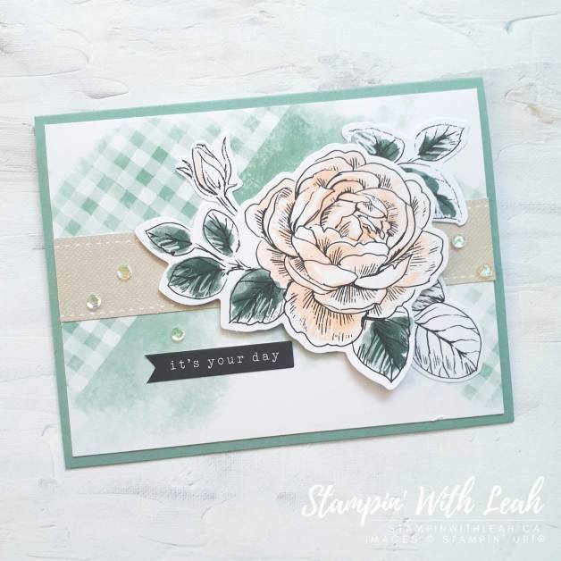 Then I used the back of the card base on a Soft Succulent card base and the Cottage Rose bundle to create another coordinating card.