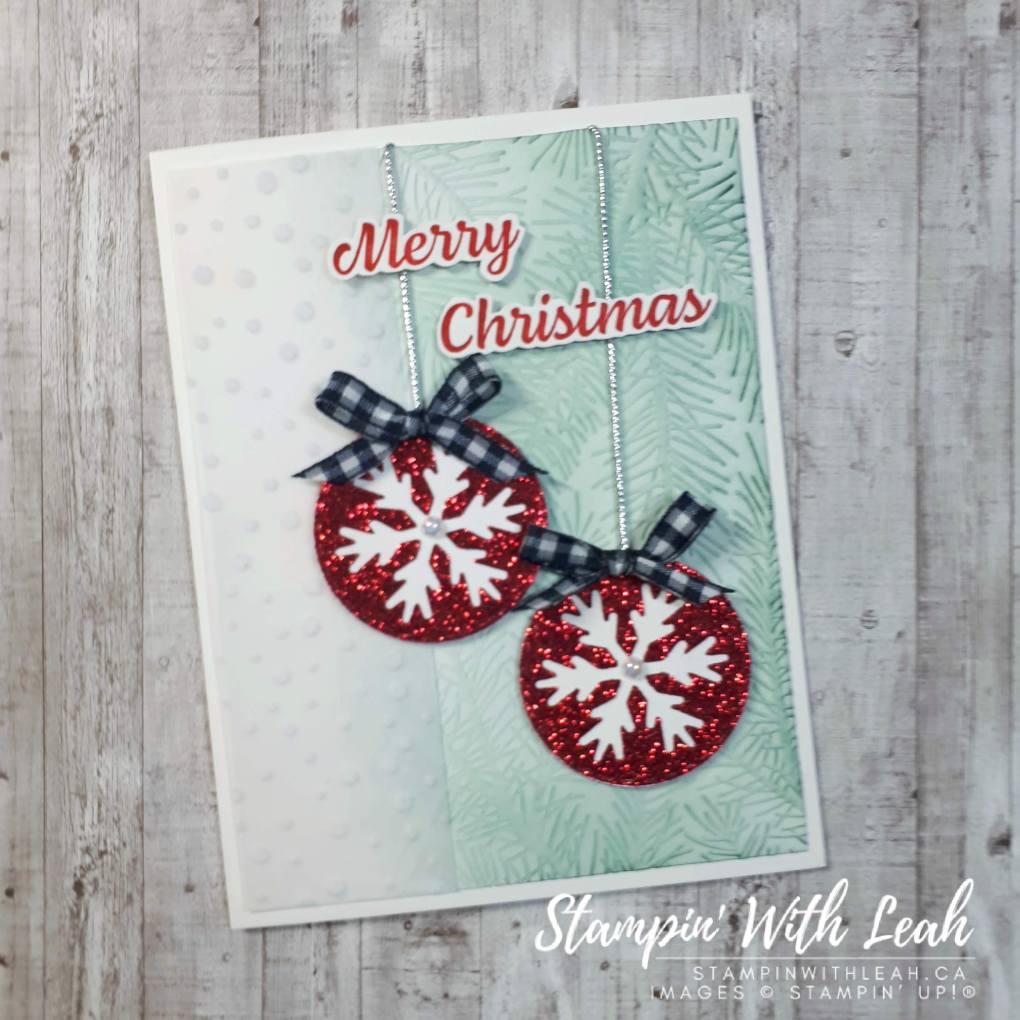 I used the wonderful Real Red & White Glimmer paper and the Celebrations Tag Dies to create the eye catching ornaments.