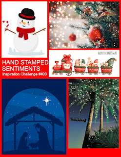 This week’s Hand Stamped Sentiments challenge is a wintry, holiday Inspiration Challenge. So many festive cards created by our design team – check them all out and then join the challenge.