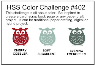 This week’s Hand Stamped Sentiments challenge is a festive Colour Challenge. Take a look at all the Cherry Cobbler, Evening Evergreen and Soft Succulent cards created by our design team and then join the challenge.
