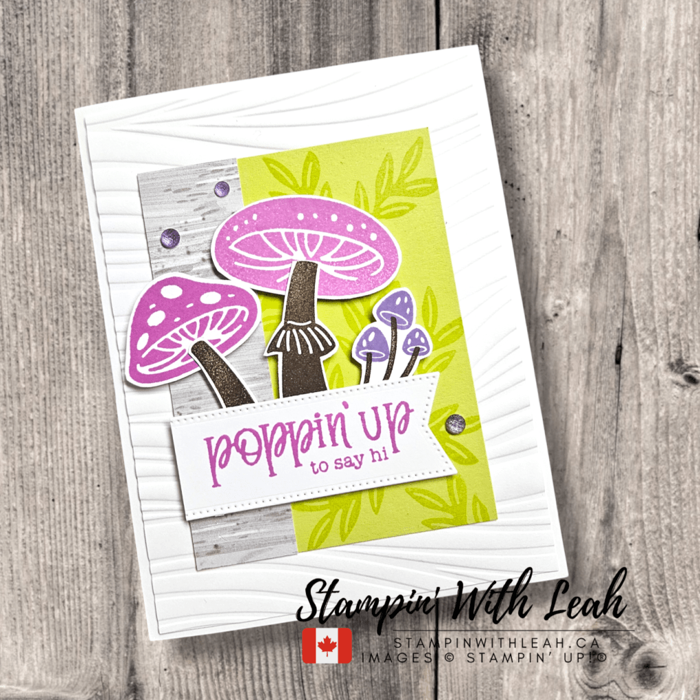 This week’s Hand Stamped Sentiments Challenge (#HSS454) is a vibrant Colour Challenge that’s sure to spark your creativity! I couldn’t wait to dive in using the new Terrific Toadstools Stamp Set and Punch Bundle. To add texture, I used the Soft Waves 3D Embossing Folder, along with a beautiful piece of the SAB-exclusive Toadstool Gardens Designer Series Paper from Stampin’ Up!
