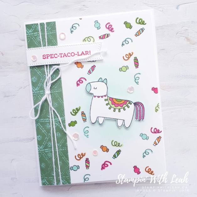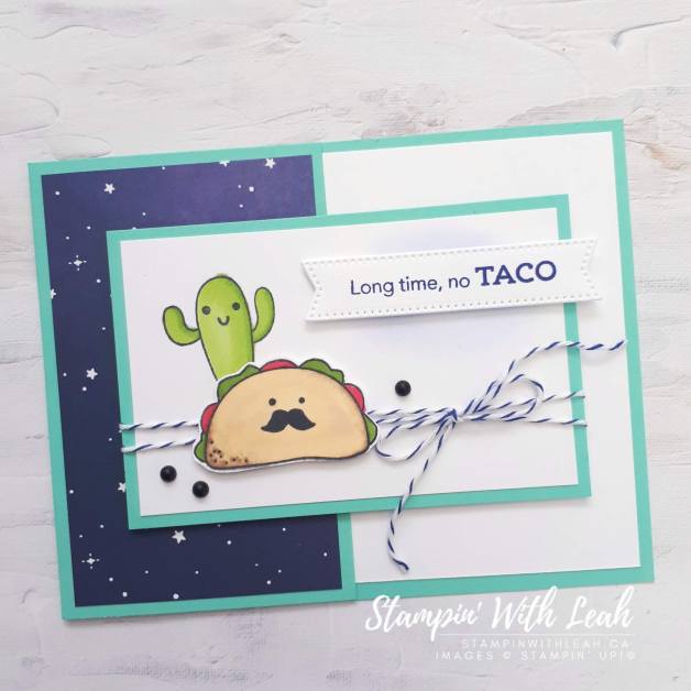 My card features the Taco Fiesta stamp set and the Enjoy the Journey 12X12 DSP – which is FREE with a $60CAD order (before shipping and taxes). See below for a full list of supplies used to create this card.
