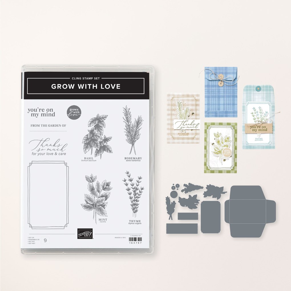 First, let’s talk about the Grow With Love Bundle—a brand-new Online Exclusive that coordinates beautifully with the February kit! It features gorgeous herb-themed stamps and coordinating dies, making it perfect for even more creative possibilities.
