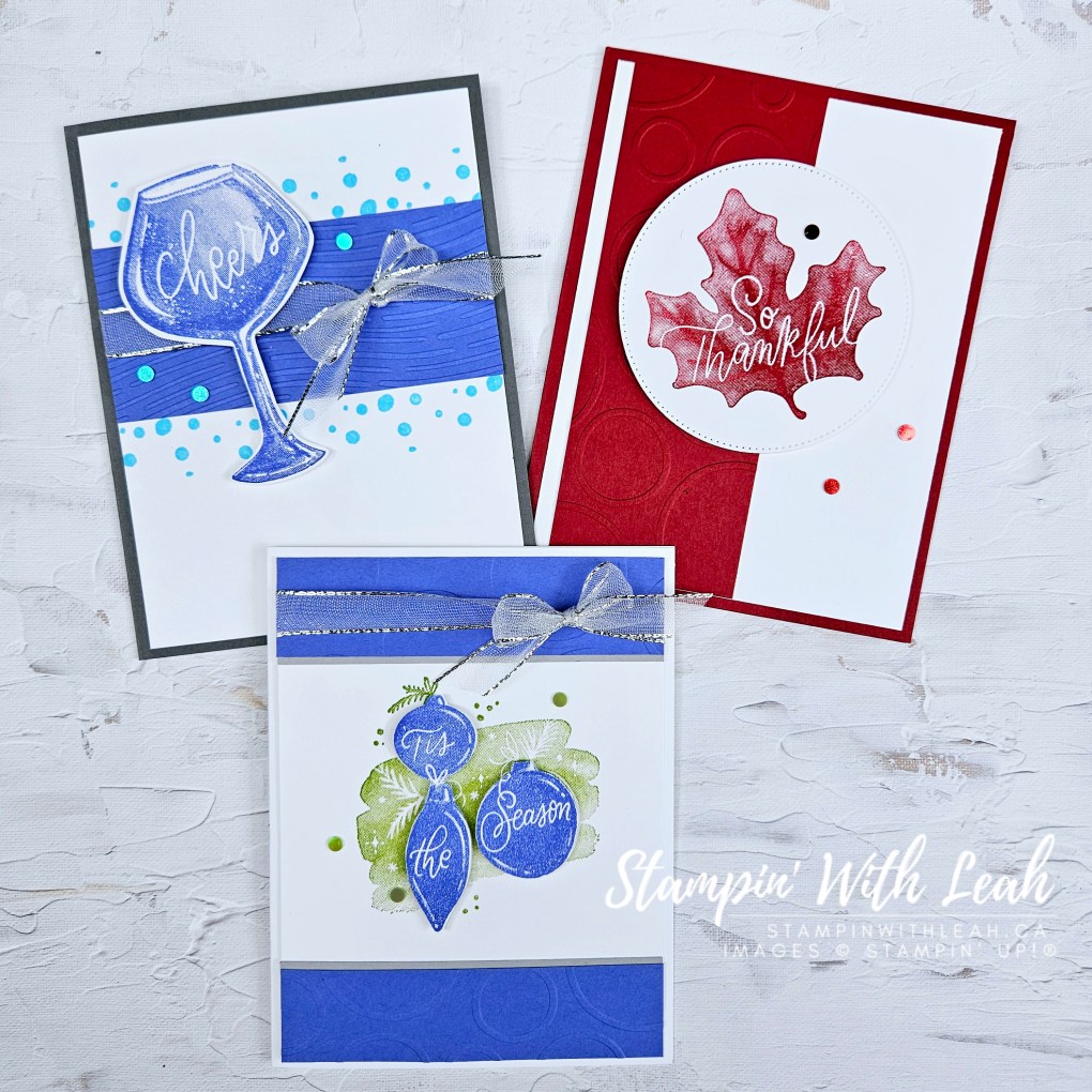 Join me every Wednesday morning for a FREE with purchase Card Class To Go. This week I featured Stampin’ Up!’s Cheers to the Season stamp set. You can see the replay of this week’s class and learn about how to get your make’n’take kit for this class below.