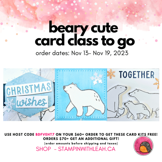 Join me every Wednesday morning for a FREE with purchase Card Class To Go. This week I featured Stampin’ Up!’s Beary Cute stamp set and punch bundle. You can see the replay of this week’s class and learn about how to get your make’n’take kit for this class below.