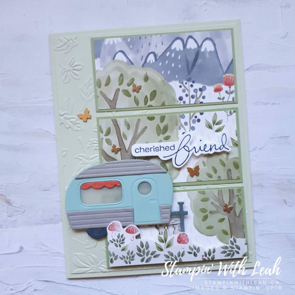 This card was created with the Happy Forest Friends DSP, the Leaf Fall 3D embossing folder, a sentiment from the Lovely You stamp set and the Treel Lot Dies. You can earn the dies for FREE with a $120CAD purchase.