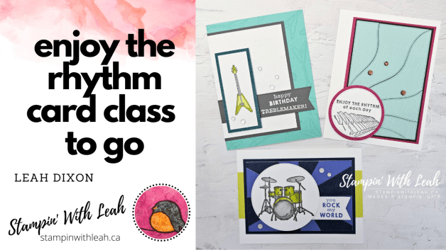 Missed my weekly card class or live outside of Canada? You can still get this 3 card PDF Tutorial (with a link to the video) for my rockin’ card class featuring the Enjoy the Rhythm Stamp Set by Stampin’ Up! The tutorial is available for $10CDN.