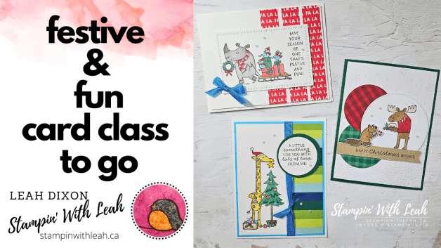 Missed my weekly card class or live outside of Canada? You can still get this 3 card PDF Tutorial (with a link to the video) for my fun card class featuring the Cheers to the Season stamp set by Stampin’ Up! The tutorial is available for $10CDN.