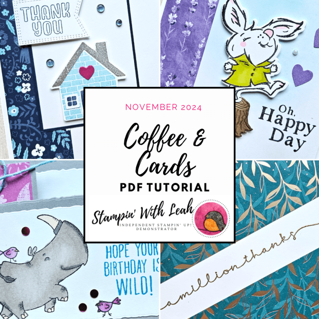 Missed my weekly card class or live outside of Canada? You can still get my 3 card PDF Tutorial (with a link to the video) for this soft and subtle class featuring the online exclusive Rhino Ready bundle by Stampin’ Up! The tutorial is available for $10CDN.