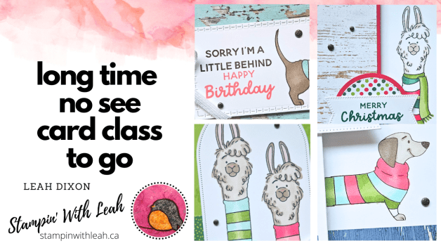 Missed my weekly card class or live outside of Canada? You can still get this 4 card PDF Tutorial (with a link to the video) for my card class featuring the Long Time No See stamp set by Stampin’ Up! The tutorial is available for $10CDN.