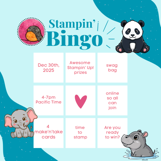 Every month I offer a free with purchase card class on line. You can grab this card class to go kit (for a limited time) when you place a $60 order in my Online Store. Although this class has passed I do still have 3 kits remaining – contact me directly to get one for yourself.