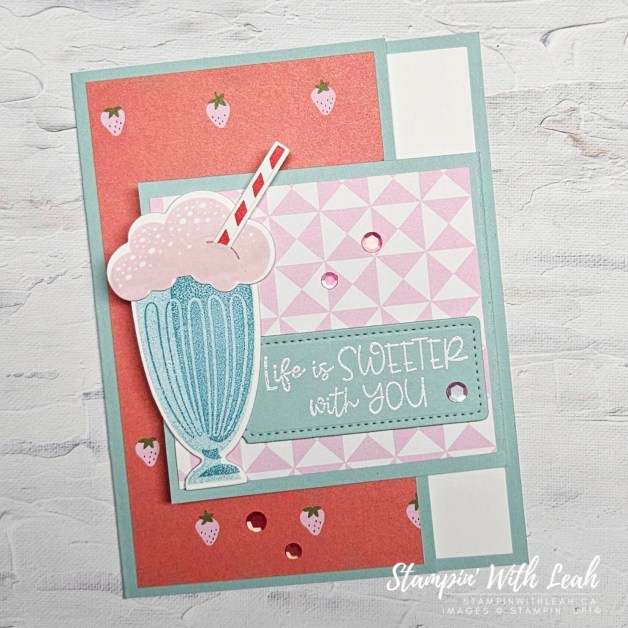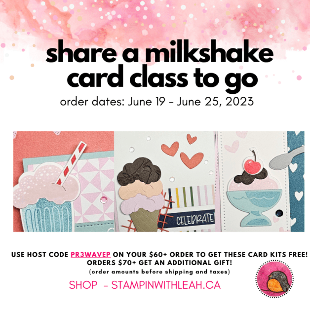 Join me every Wednesday morning for a FREE with purchase Card Class To Go. This week I featured Stampin’ Up!’s Share a Milkshake stamp set and the coordinating dies (sold separately). You can see the replay of this week’s class and learn about how to get your make’n’take kit for this class below. Also scroll down to check out the DSP sale and the Starter Kit promotion going on this June! The fantastic DSP featured in these cards is even on sale !