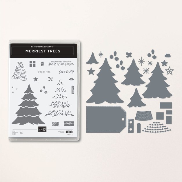 Every week I go live on my FB – this week I featured the annual catalogue Merriest Trees stamp set and dies to create a Christmas Card.