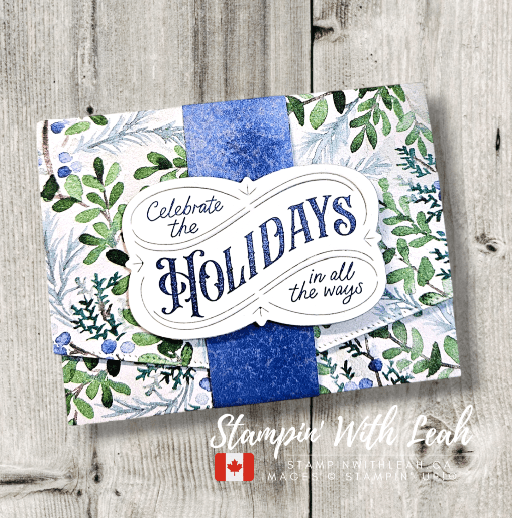 Every week I go live on my FB – this week I featured the Winter Meadow DSP from the annual catalogue and the Christmas Labels bundle from the Sep – Dec Mini Catalogue to create a fast and beautiful gift card holder.