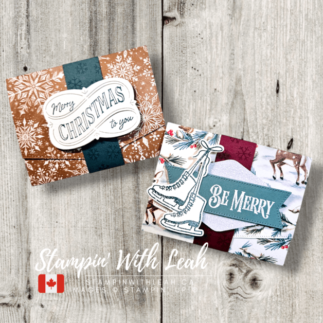 This week I am visiting my parents in Armstrong, BC – so I decided to feature a kit since they are fabulous to travel with. They come with everything you need except a pair of scissors and a stamp cleaner. The Christmas Wishes kit from Stampin’ Up! is their newest holiday kit. You get to make 8 cards ( 4 each of 2 designs). You can see the video of the 2 designs from the kit as well as 2 alternative designs.