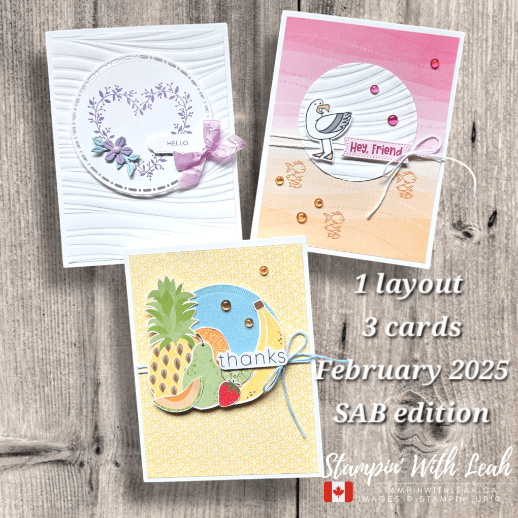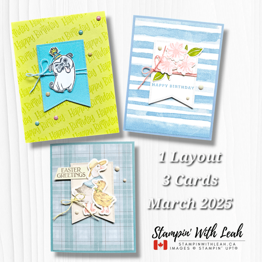 Ready to stretch your creativity with a single layout? In my April 2025 edition of “1 Layout / 3 Cards,” I used the same basic structure to create three completely different looks! The sketch is from page 22 of the Stampin’ Up!® Annual Catalogue. I also have a printable version for you below.