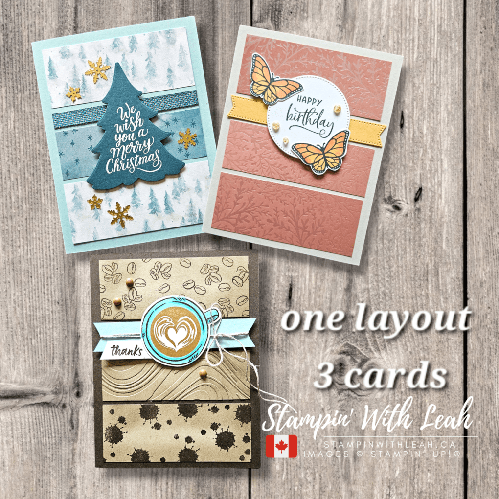 Today I used one of the layouts from page 22 of the Stampin’ Up! 2024 Annual Catalogue! Here are the 3 cards that I created live – you can see the full video below.