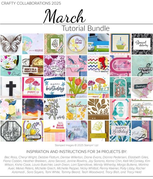 When you place a $65+ order, you’ll receive the 34 project March Crafty Collaborations Tutorial PDF as an extra gift from me! This is an amazing resource full of creative inspiration from many talented demonstrators. Want to stay updated on all my events and classes? Subscribe to my newsletter!