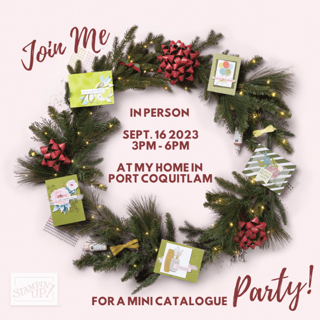 Looking for some more fun stamping experiences in person or online? If you are local to Port Coquitlam, join me in person for Coffee and Cards or contact me to book your own card class. You can always check out my calendar of events at my website.