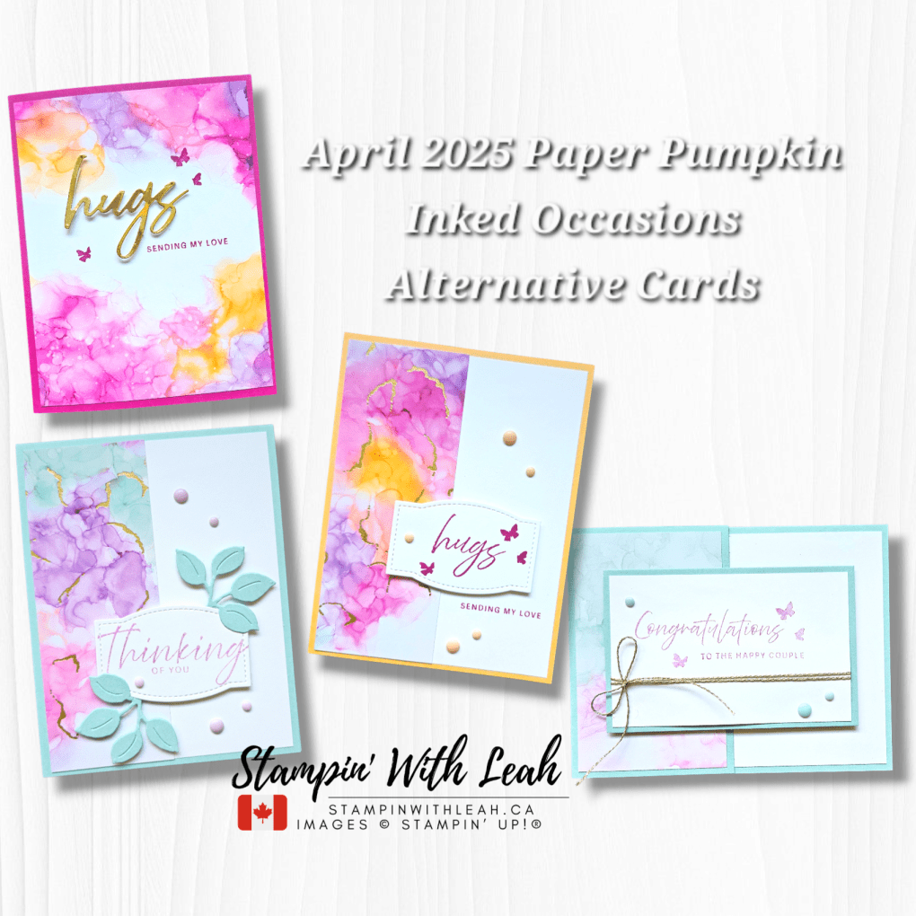 April’s Inked Occasions kit features hand-painted alcohol ink designs that will add a beautiful artistic touch to your cards. This kit is perfect for all occasions and includes: