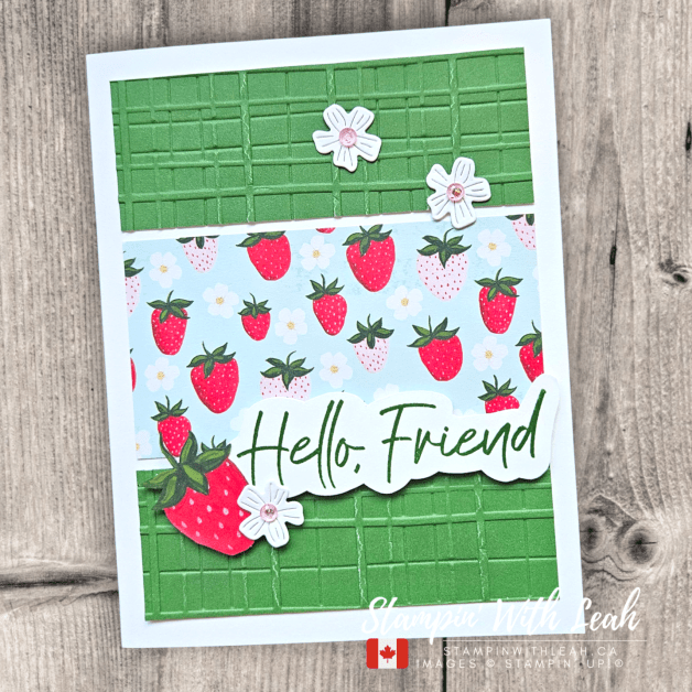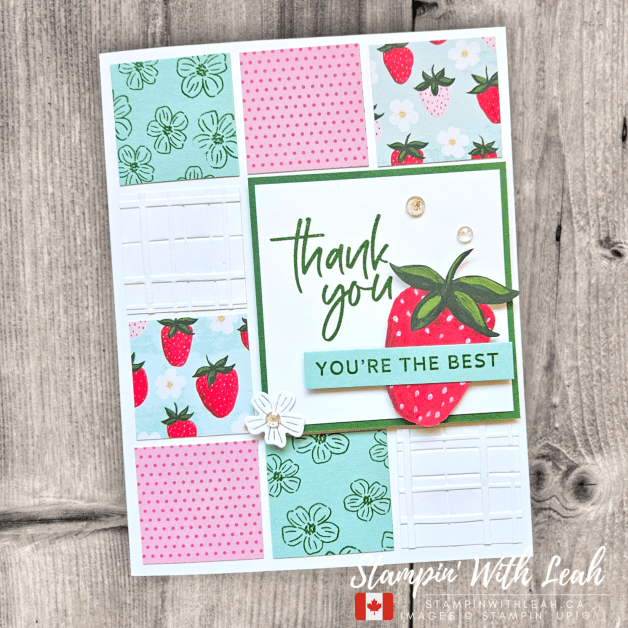 This month’s Sweeter With You Paper Pumpkin kit is full of juicy strawberries, cheerful colours, and fresh summer charm. It includes everything you need to create eight cards—two each of four pre-designed projects—plus coordinating envelopes, a photopolymer stamp set, die cuts, adhesives, and more.